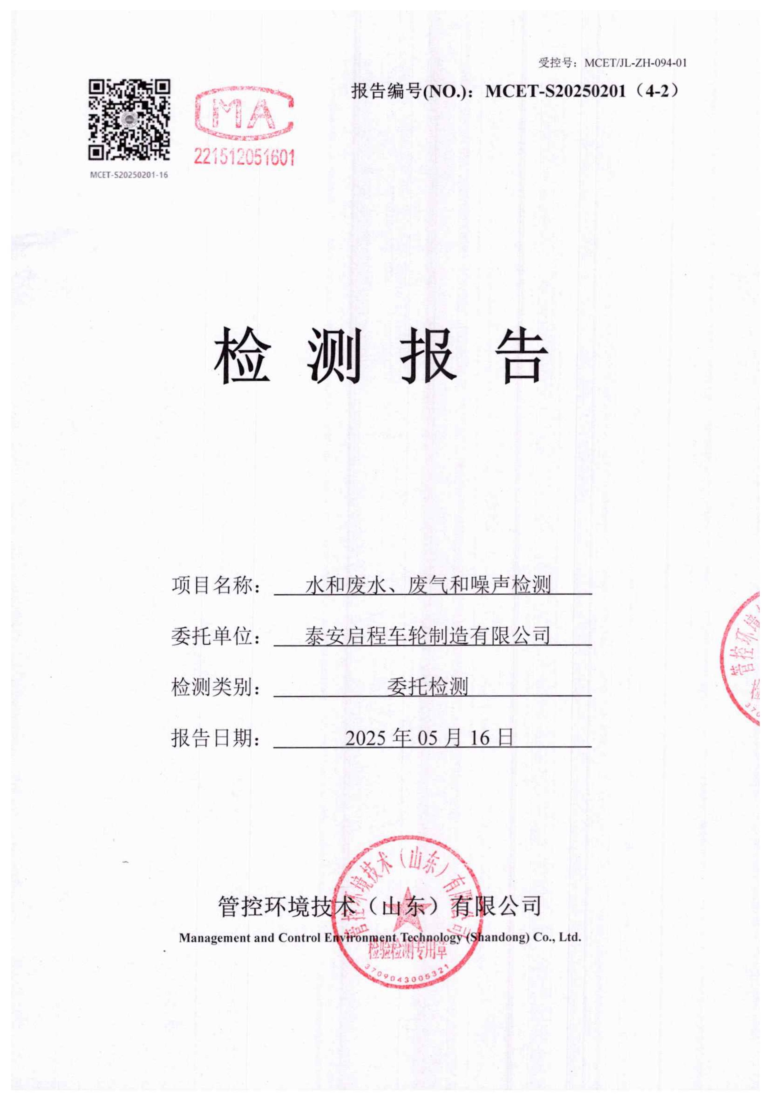 泰安啟程車(chē)輪制造有限公司2025年5月份環(huán)境污染物排放檢測(cè)報(bào)告