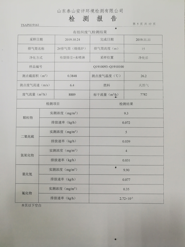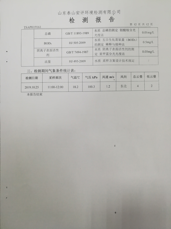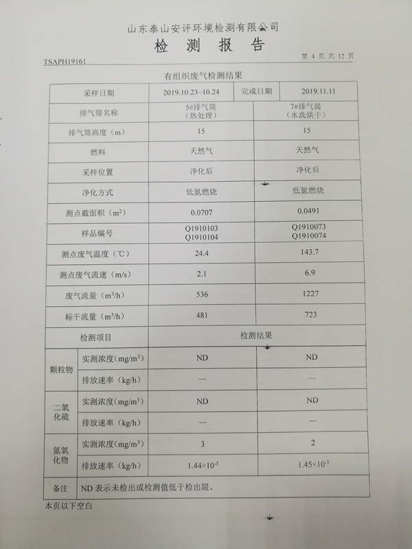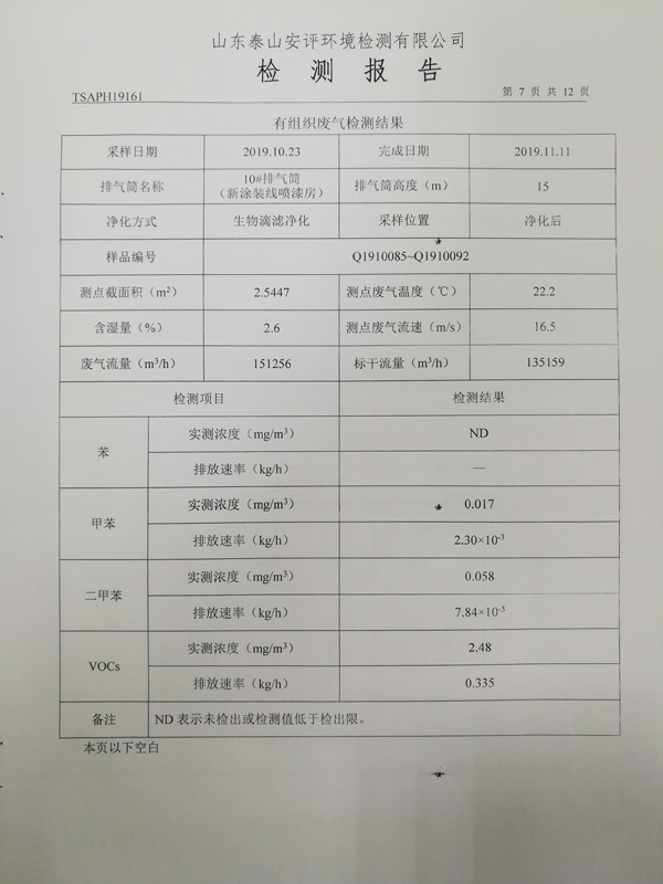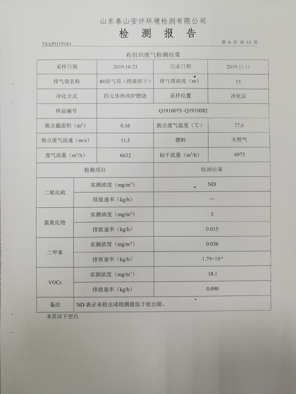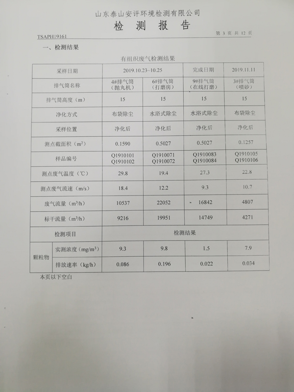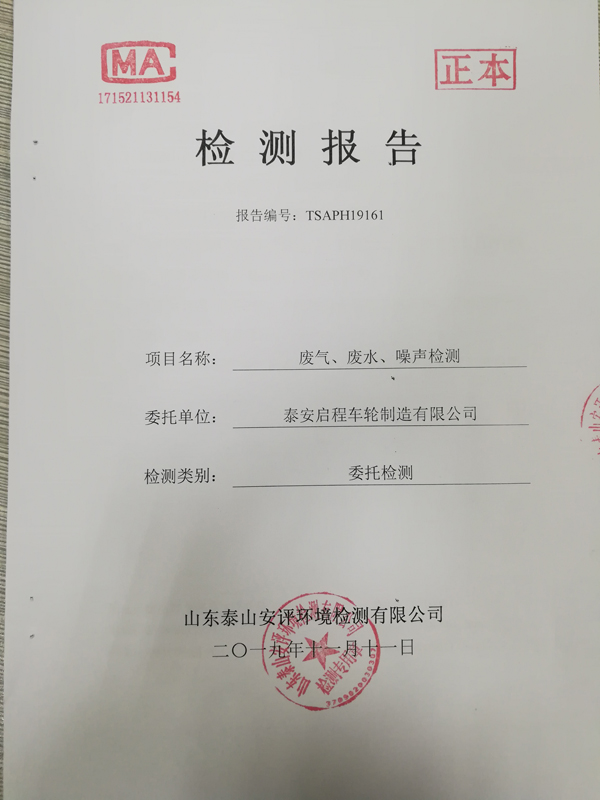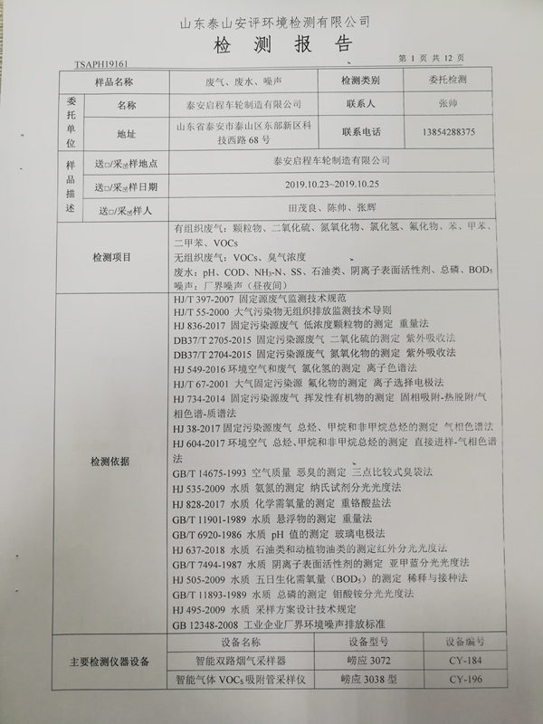 泰安啟程車輪制造有限公司2019年10月份檢測報告
