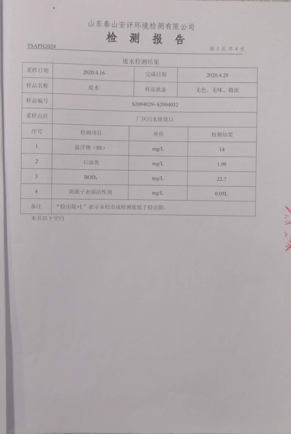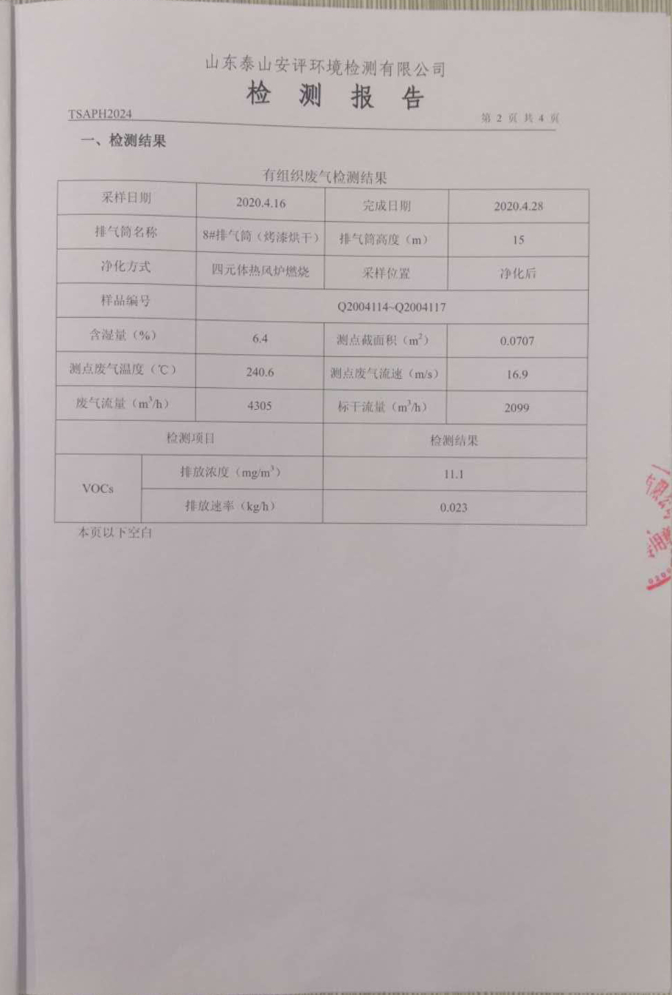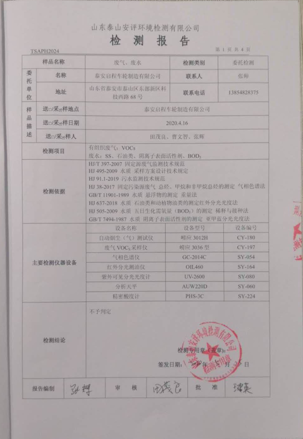 泰安啟程車輪制造有限公司2020年4月份環(huán)境污染物排放檢測(cè)報(bào)告