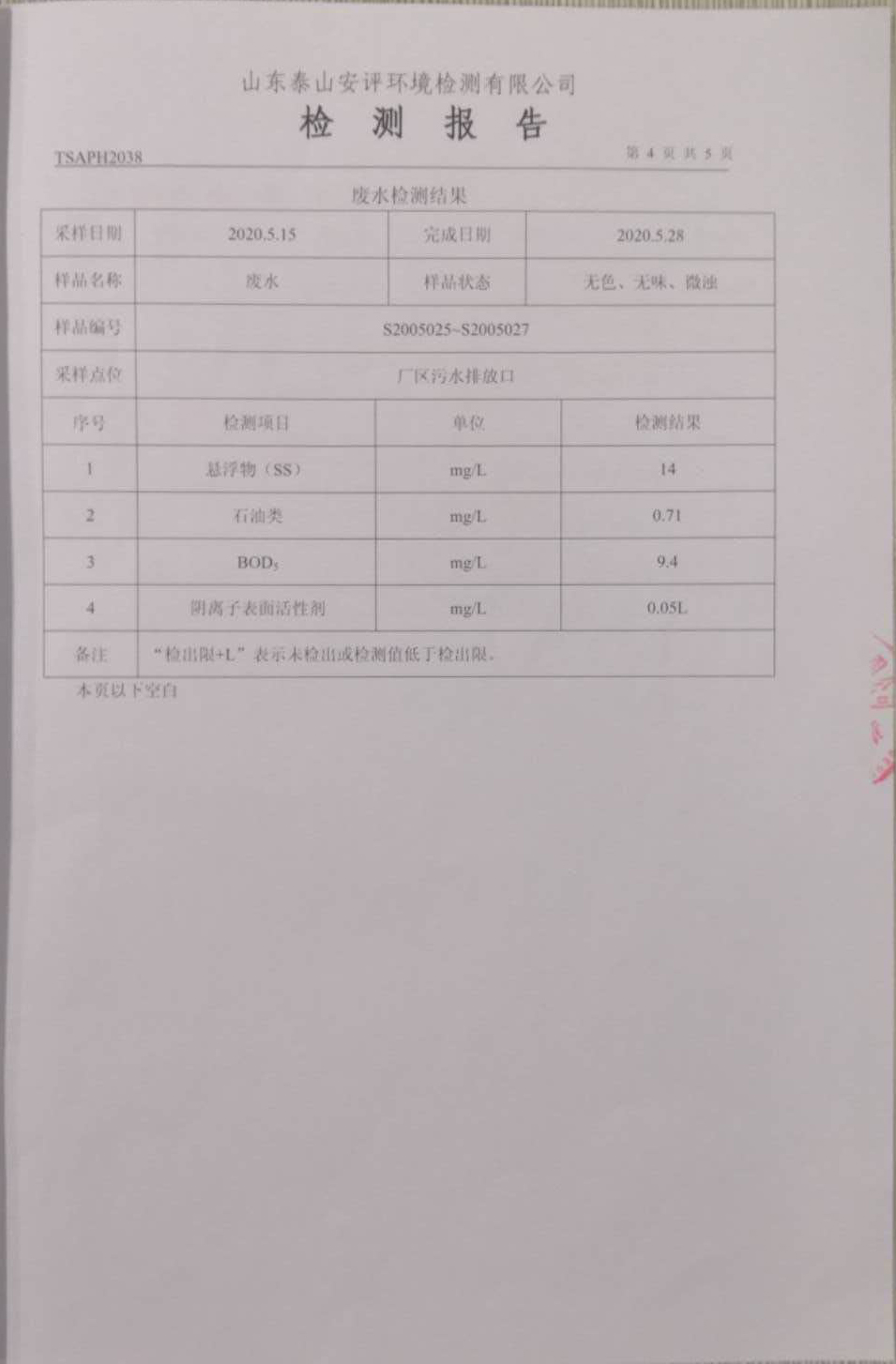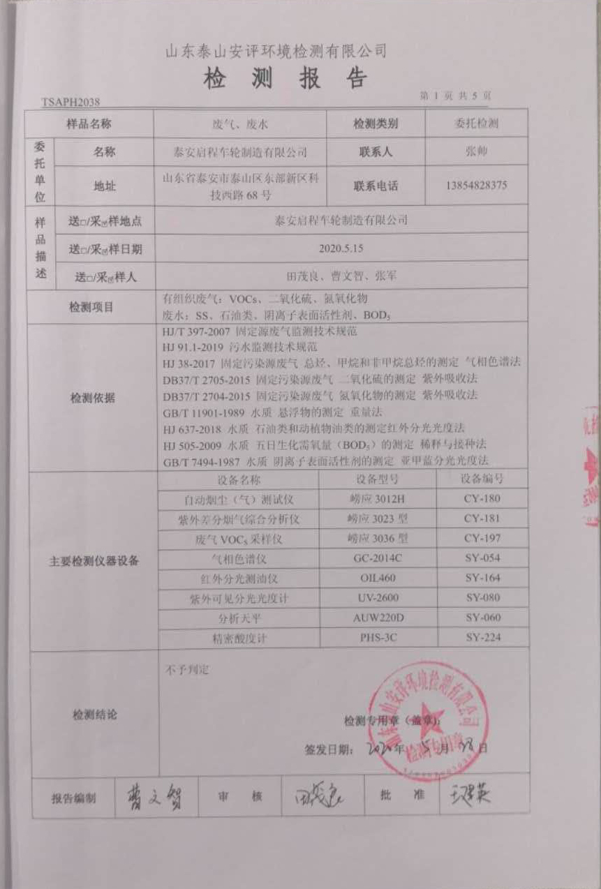 泰安啟程車輪制造有限公司2020年5月份環(huán)境污染物排放檢測報告