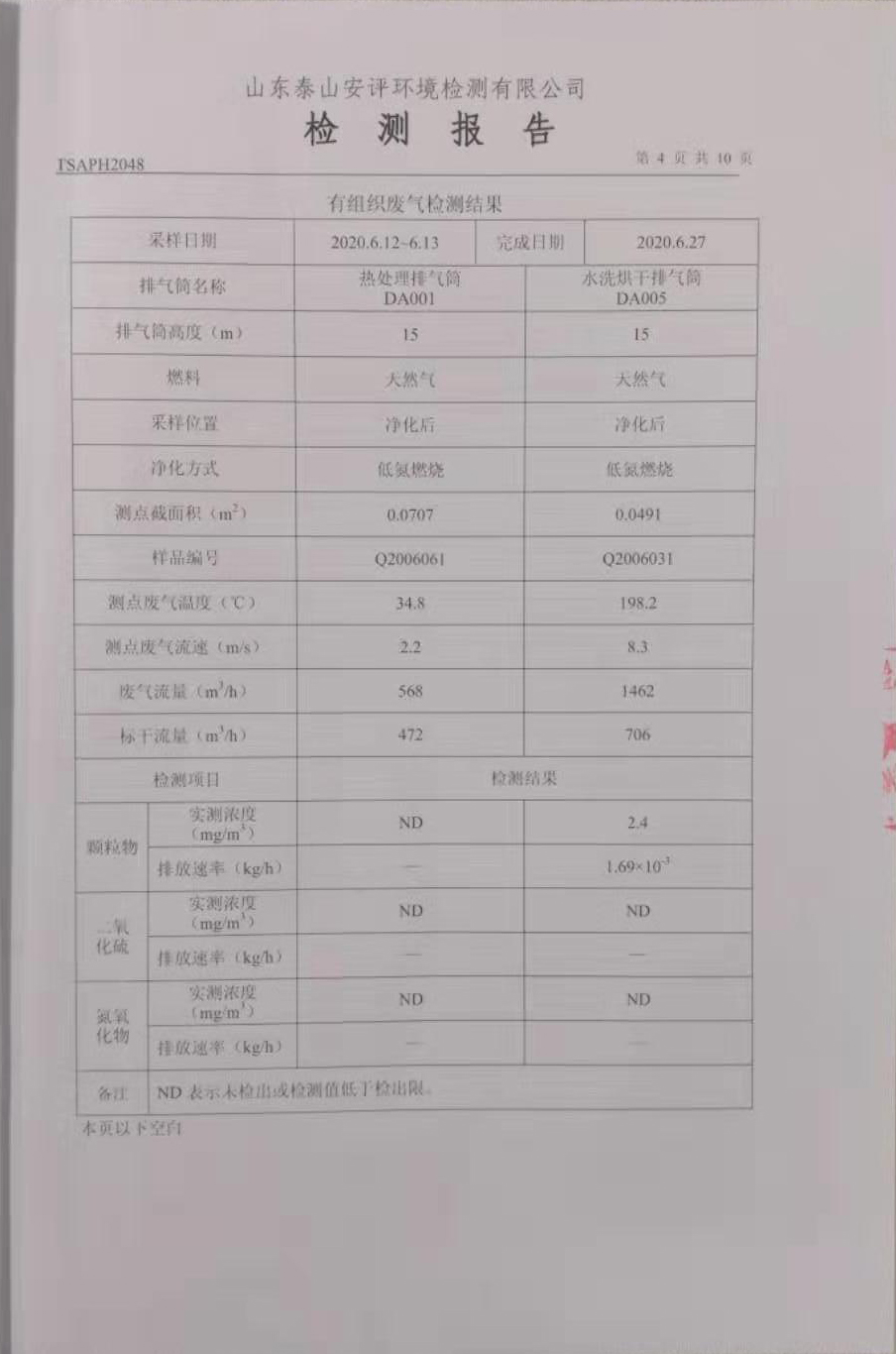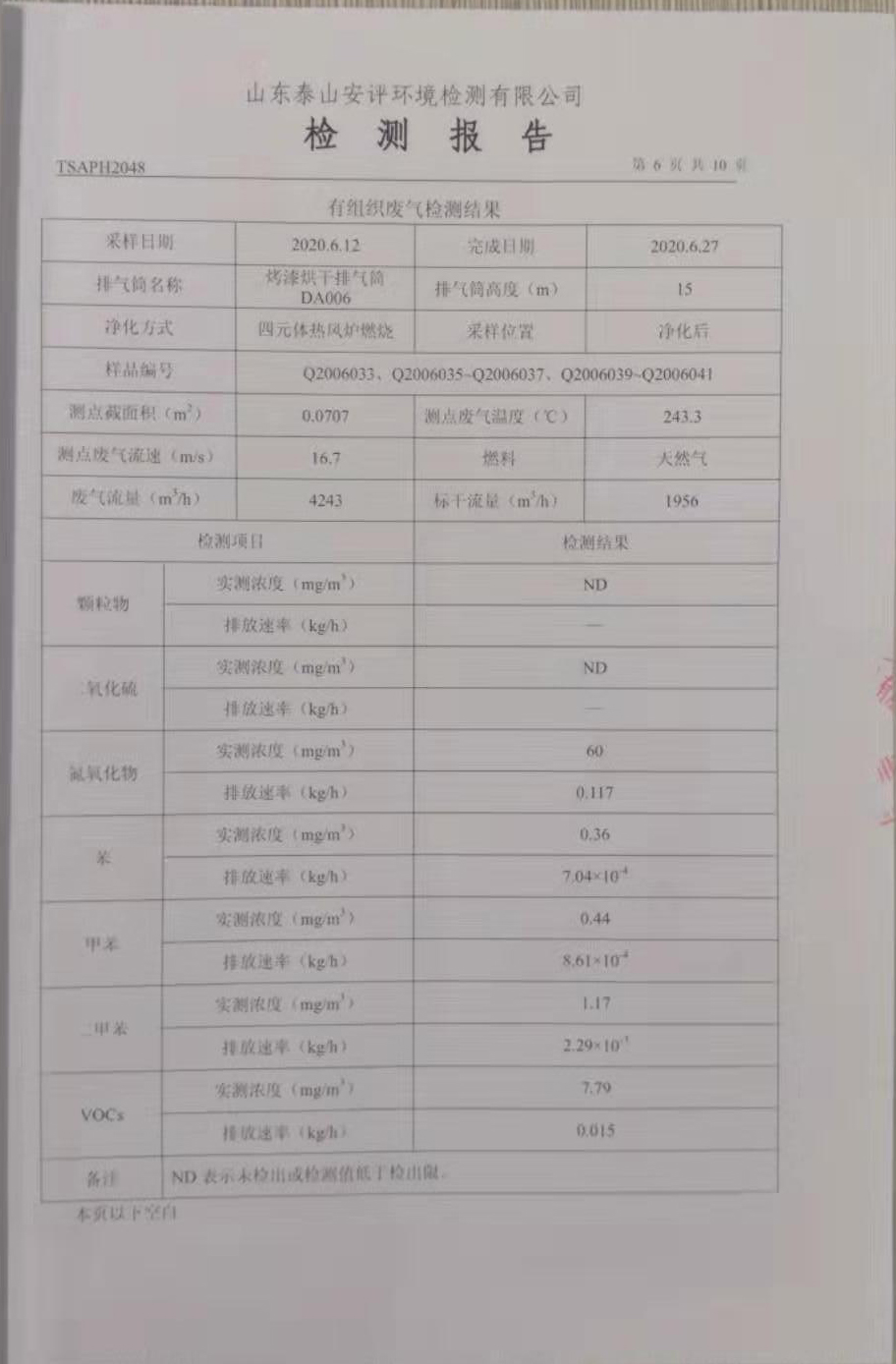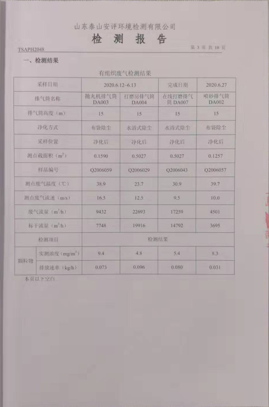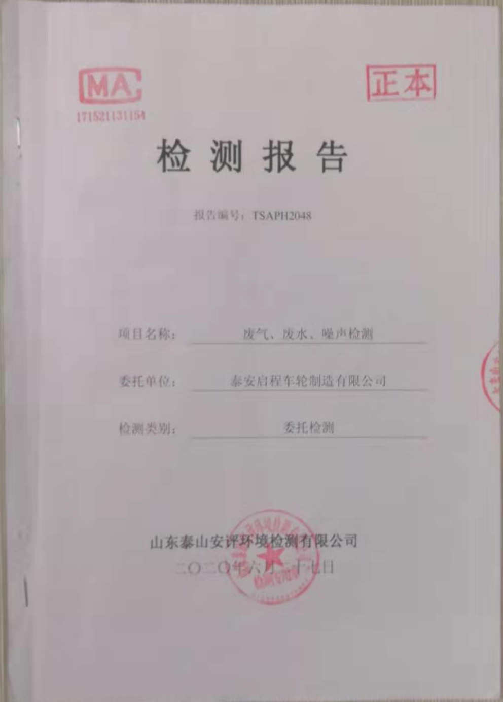 泰安啟程車輪制造有限公司2020年6月份環(huán)境污染物排放檢測報告