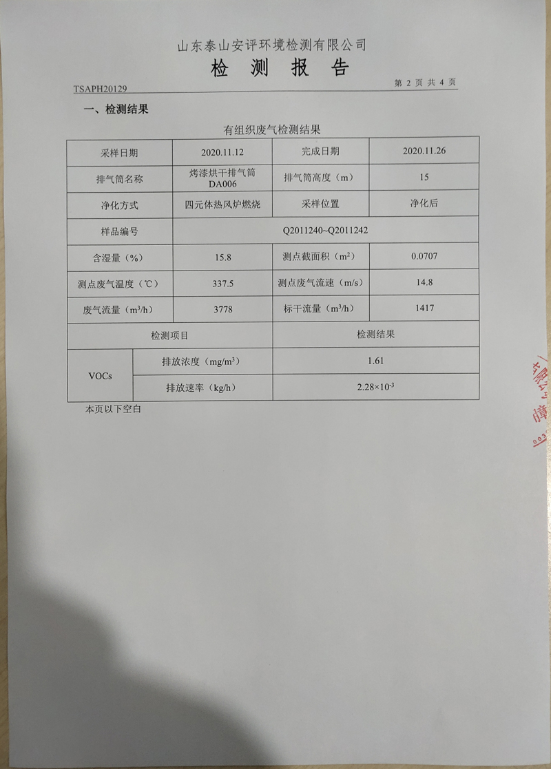 泰安啟程車輪制造有限公司2020年11月份環(huán)境污染物排放檢測(cè)報(bào)告