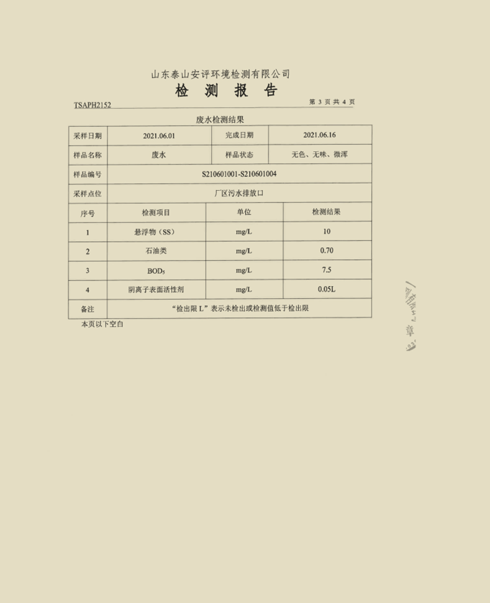 泰安啟程車輪制造有限公司2021年6月份環(huán)境污染物排放檢測報告