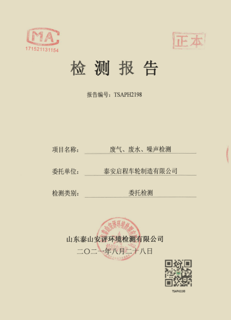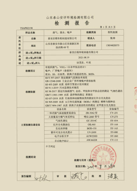 泰安啟程車(chē)輪制造有限公司2021年8月份環(huán)境污染物排放檢測(cè)報(bào)告