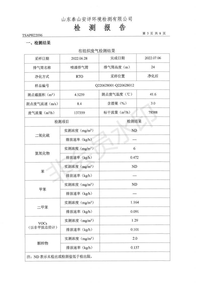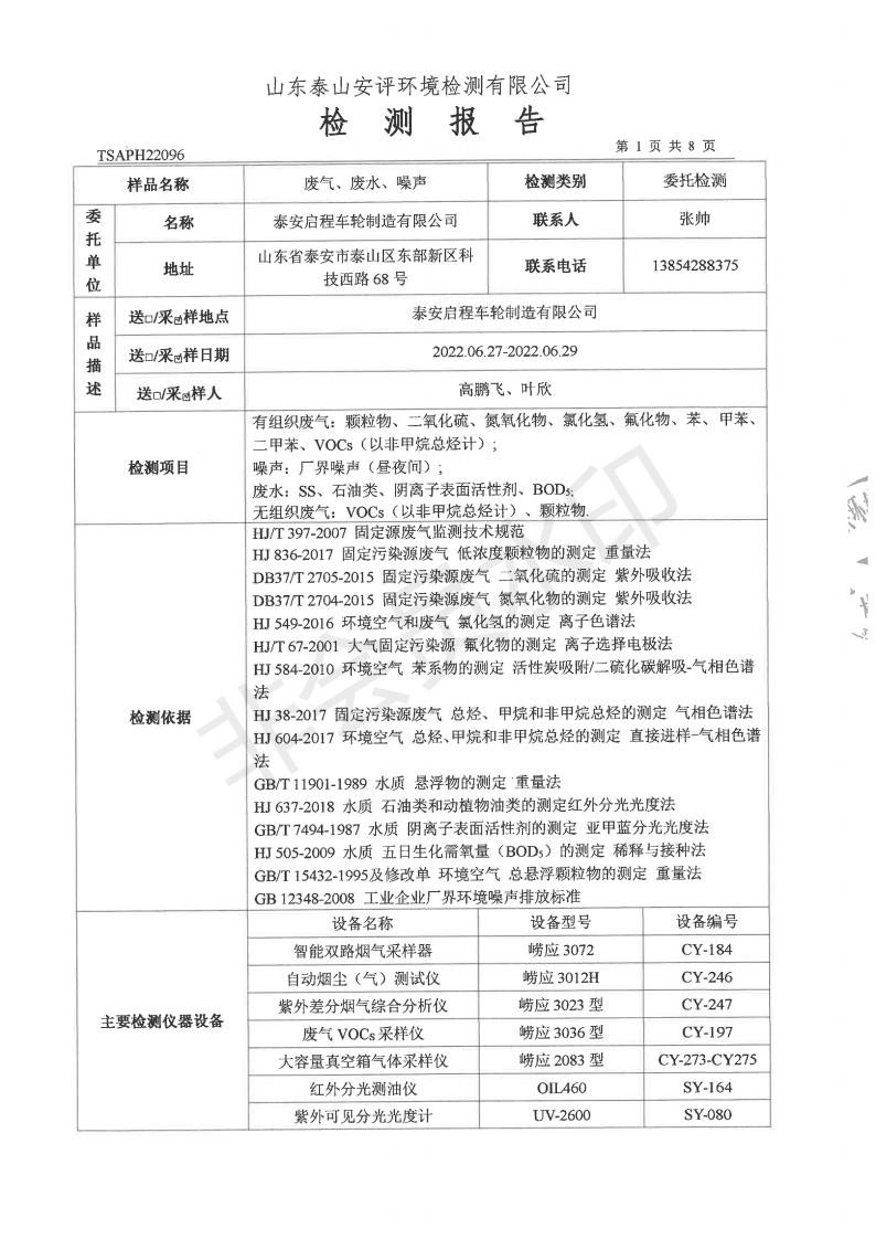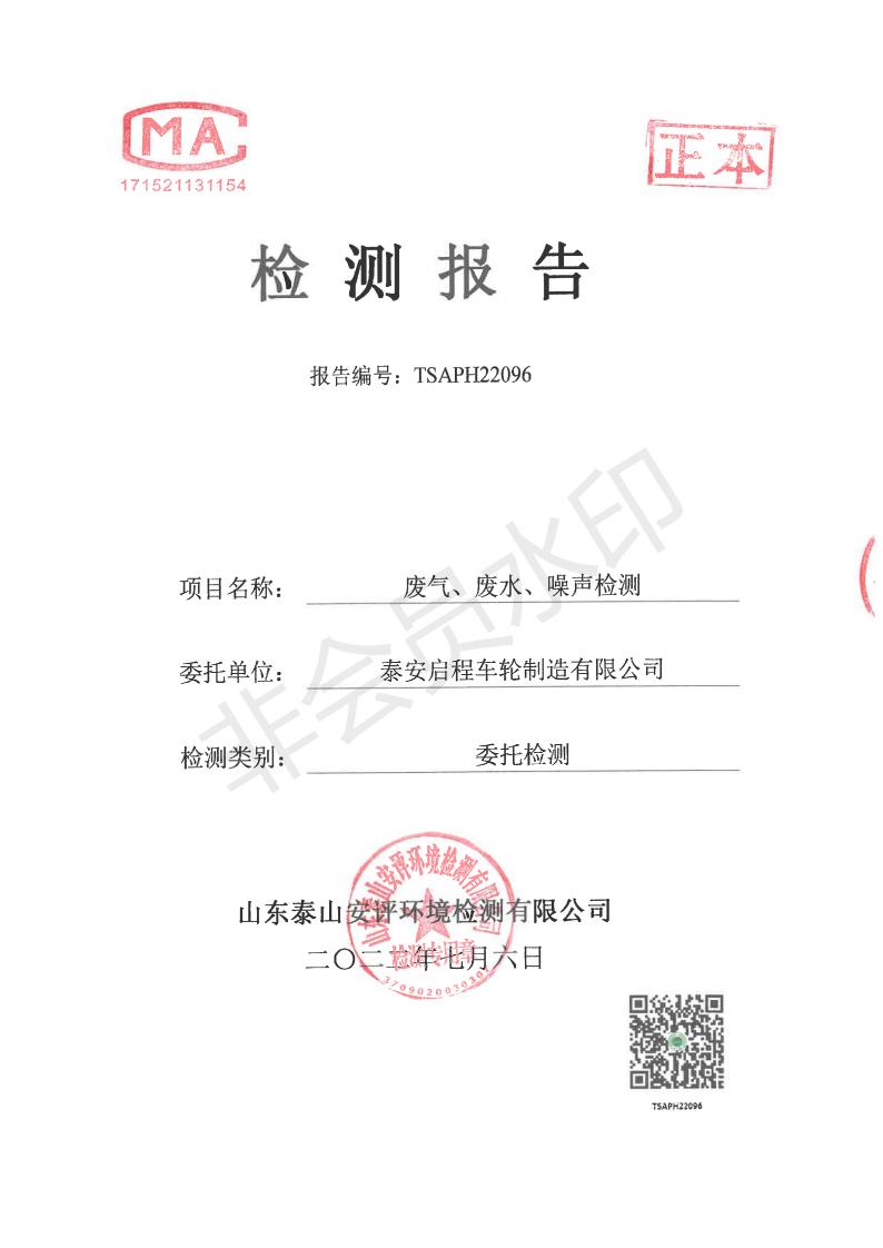 泰安啟程車輪制造有限公司2022年6月份環(huán)境污染物排放檢測(cè)報(bào)告