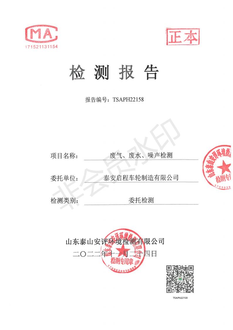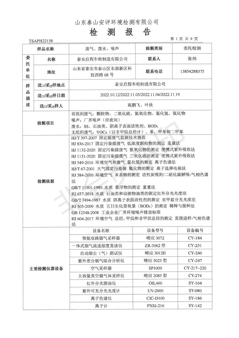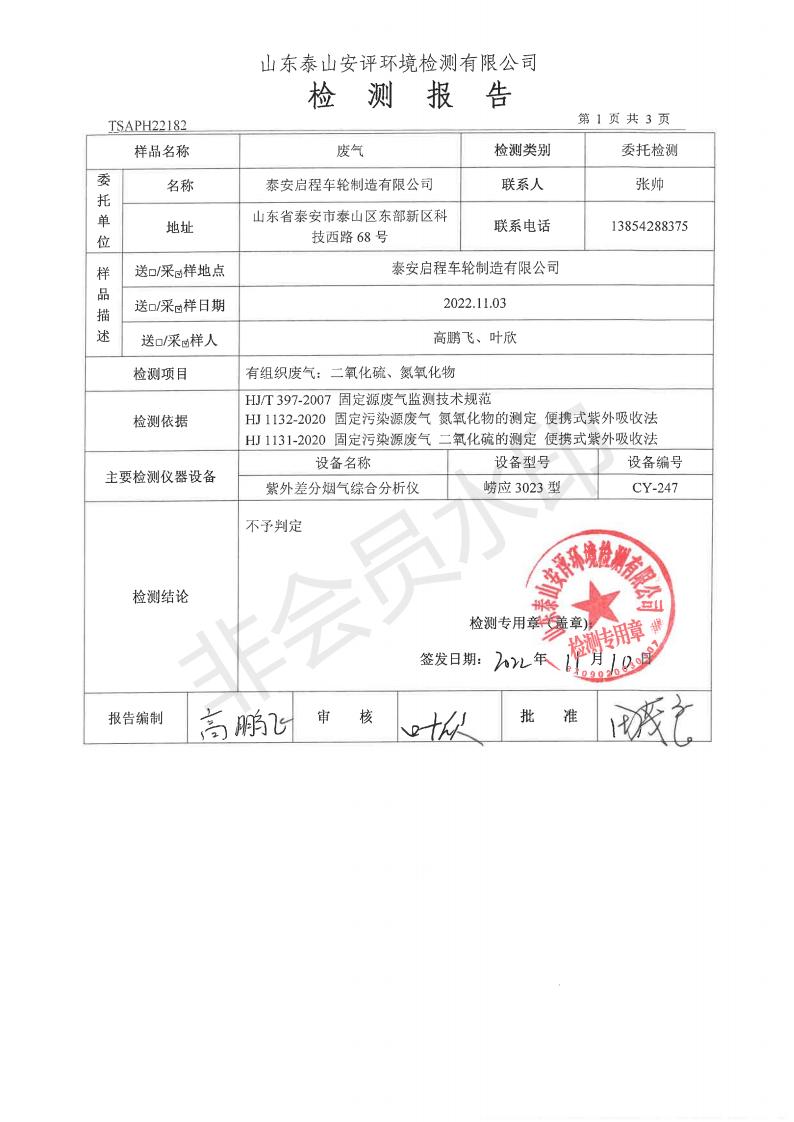 泰安啟程車輪制造有限公司2022年11月份及4季度環(huán)境污染物排放檢測(cè)報(bào)告
