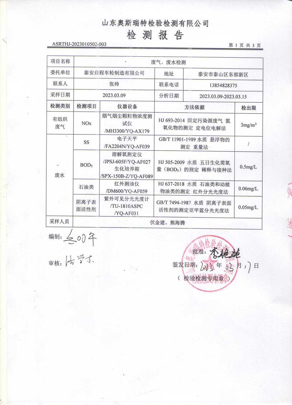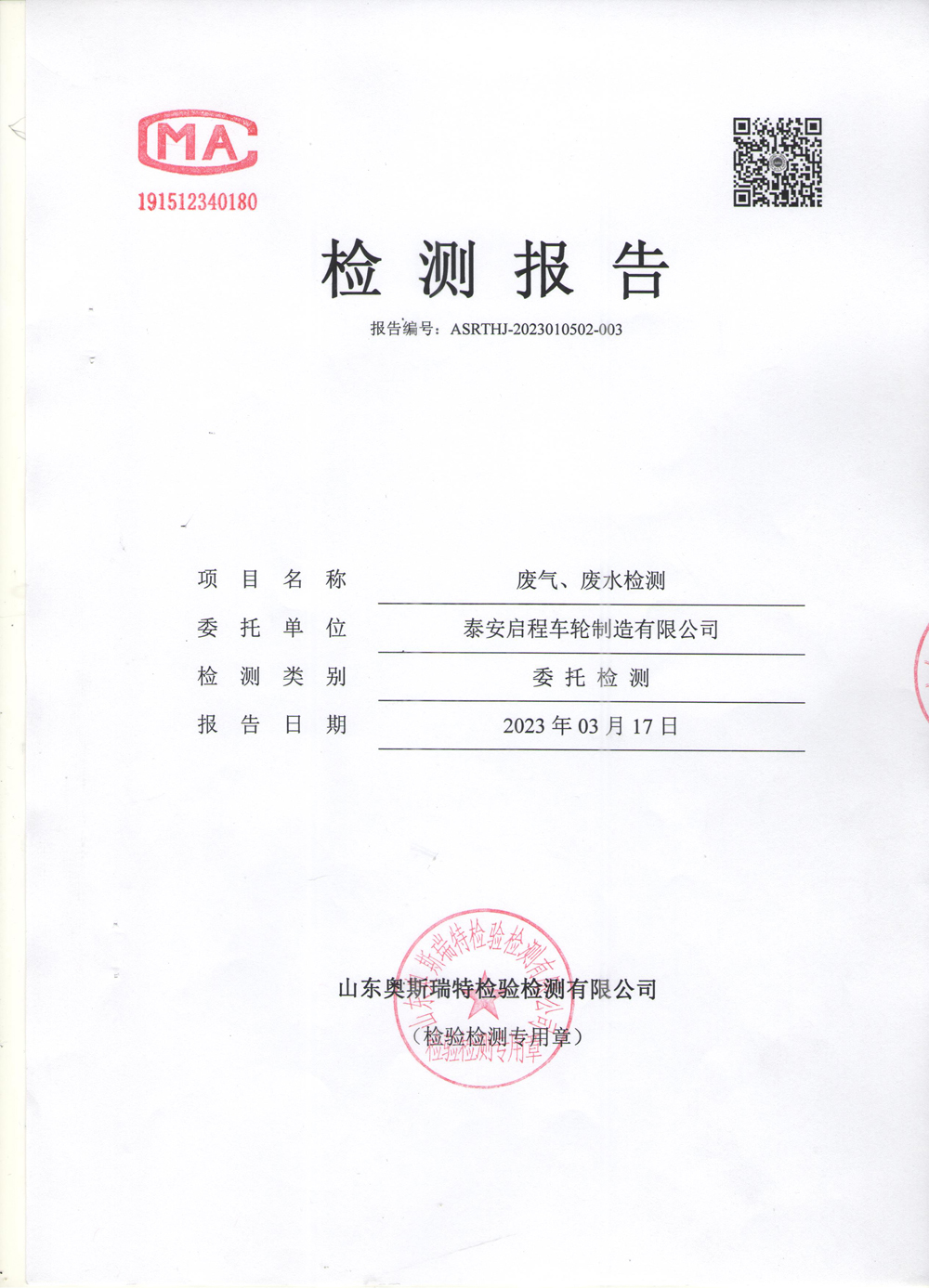 泰安啟程車輪制造有限公司2023年3月份環(huán)境污染物排放檢測報告