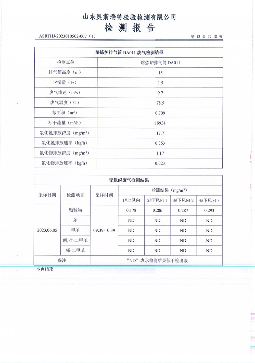 泰安啟程車輪制造有限公司2023年6月份環(huán)境污染物排放檢測報告