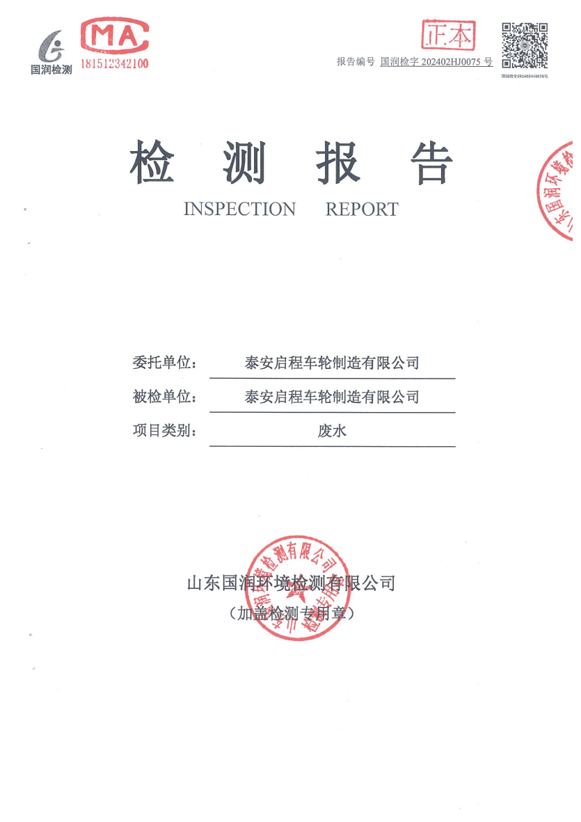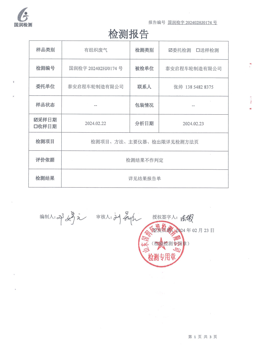 泰安啟程車輪制造有限公司2024年2月份環(huán)境污染物排放檢測報告