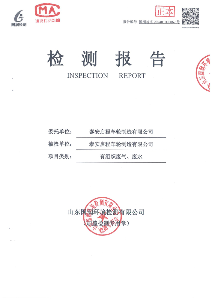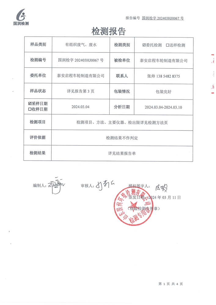 泰安啟程車輪制造有限公司2024年3月份環(huán)境污染物排放檢測報告