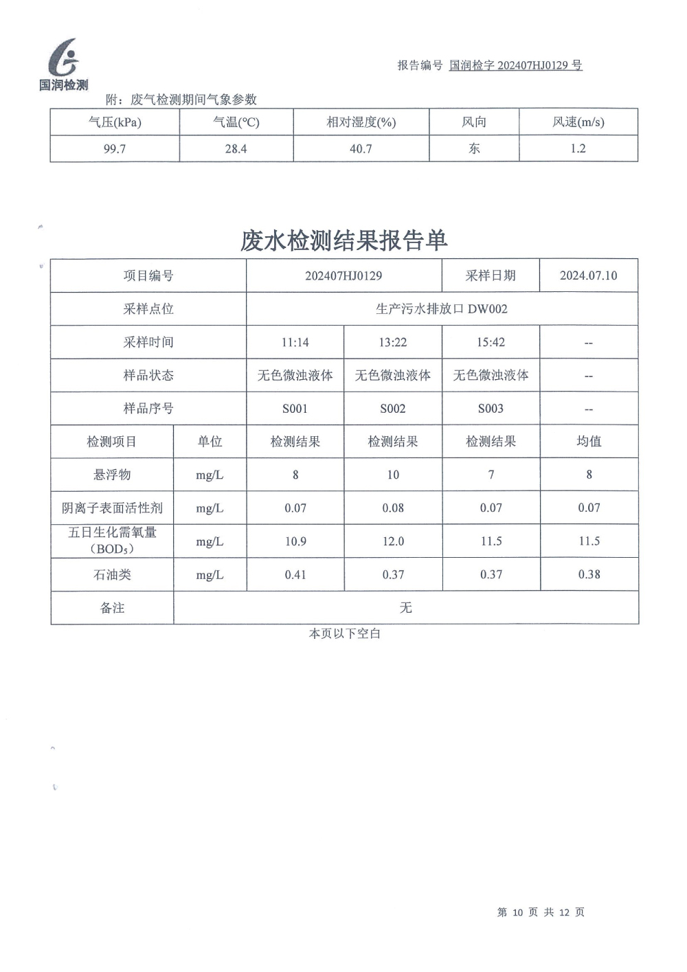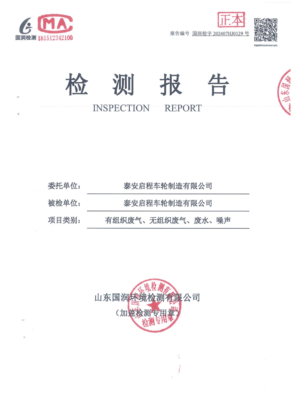 泰安啟程車(chē)輪制造有限公司2024年7月份環(huán)境污染物排放檢測(cè)報(bào)告