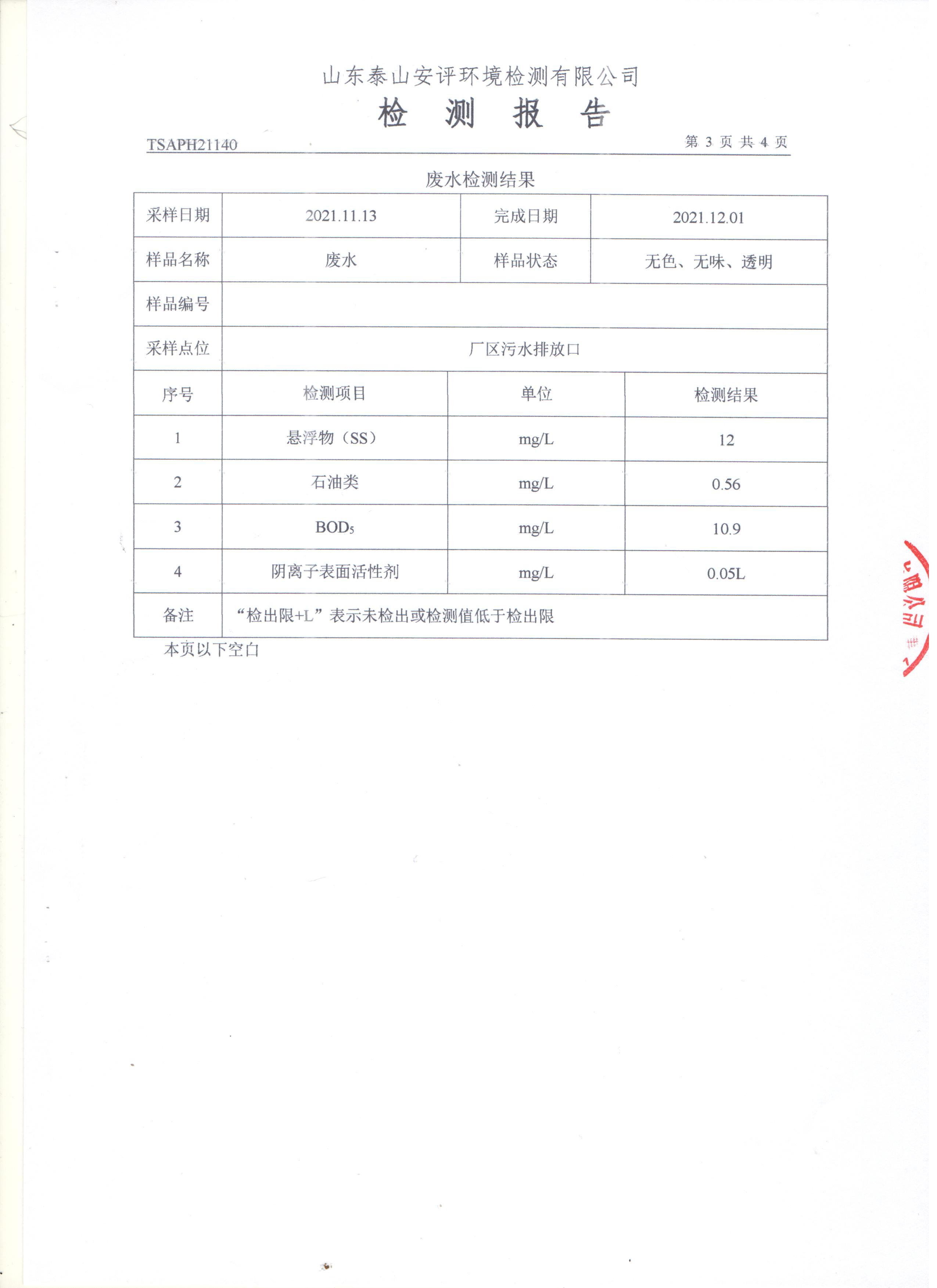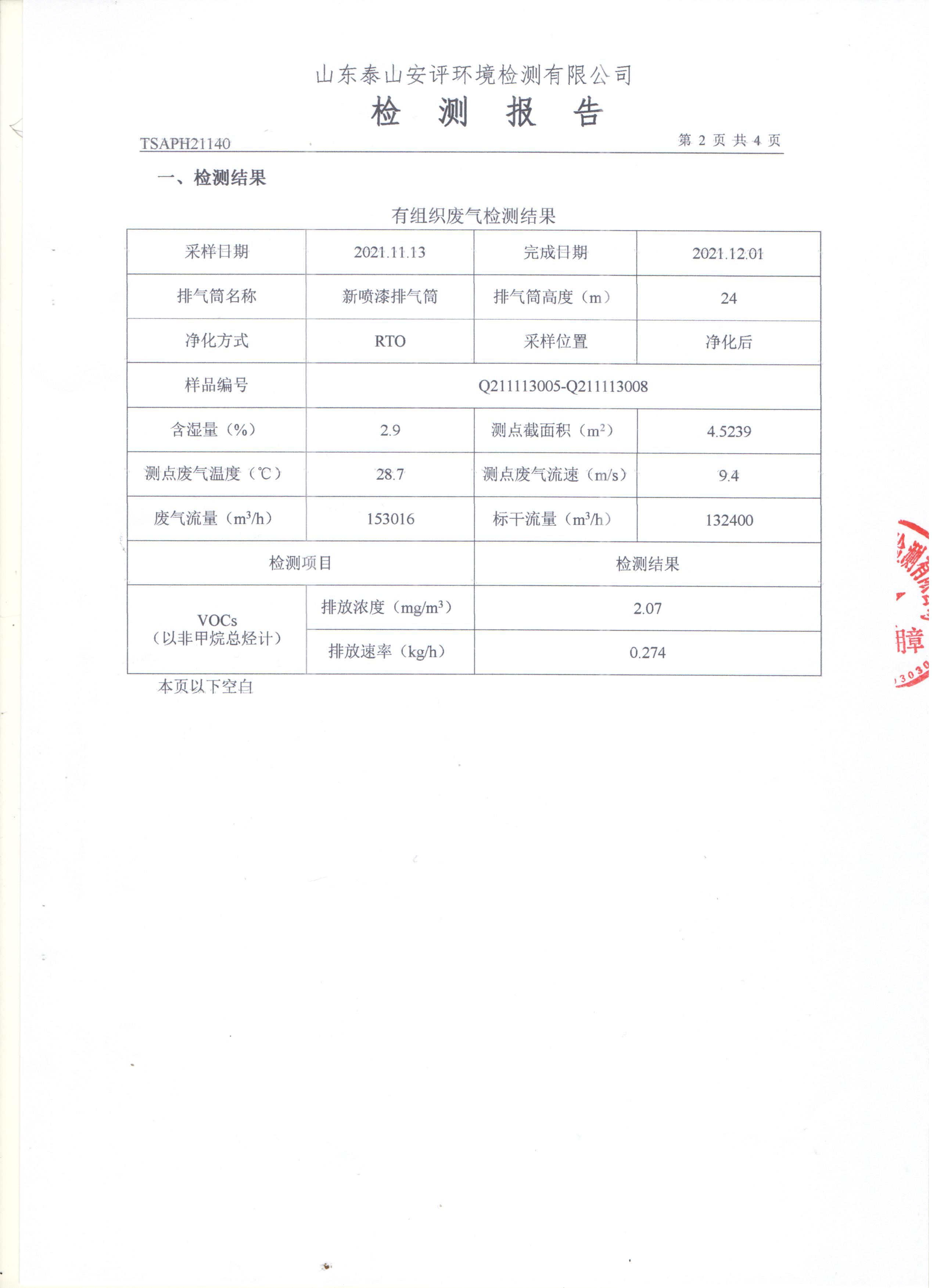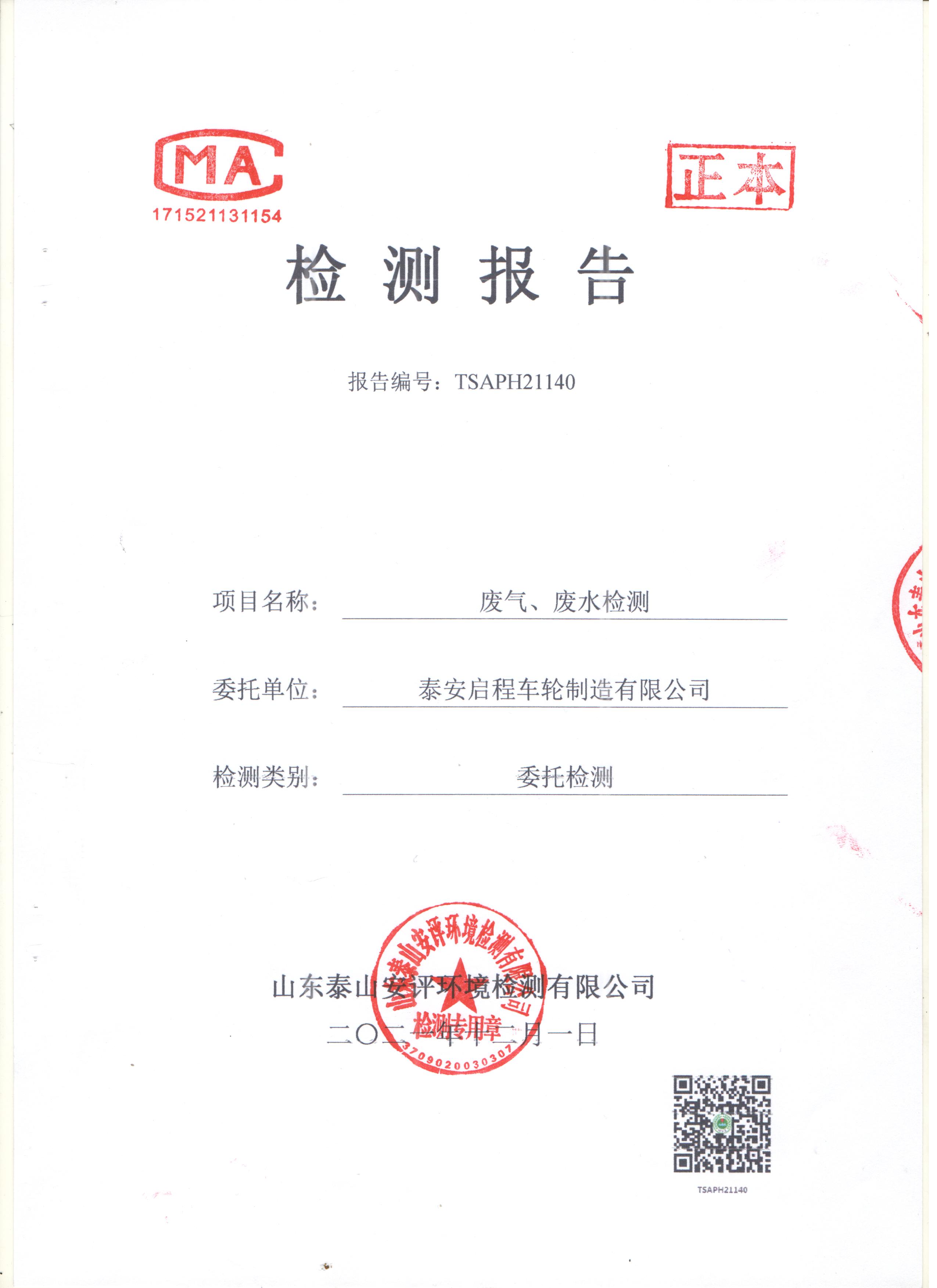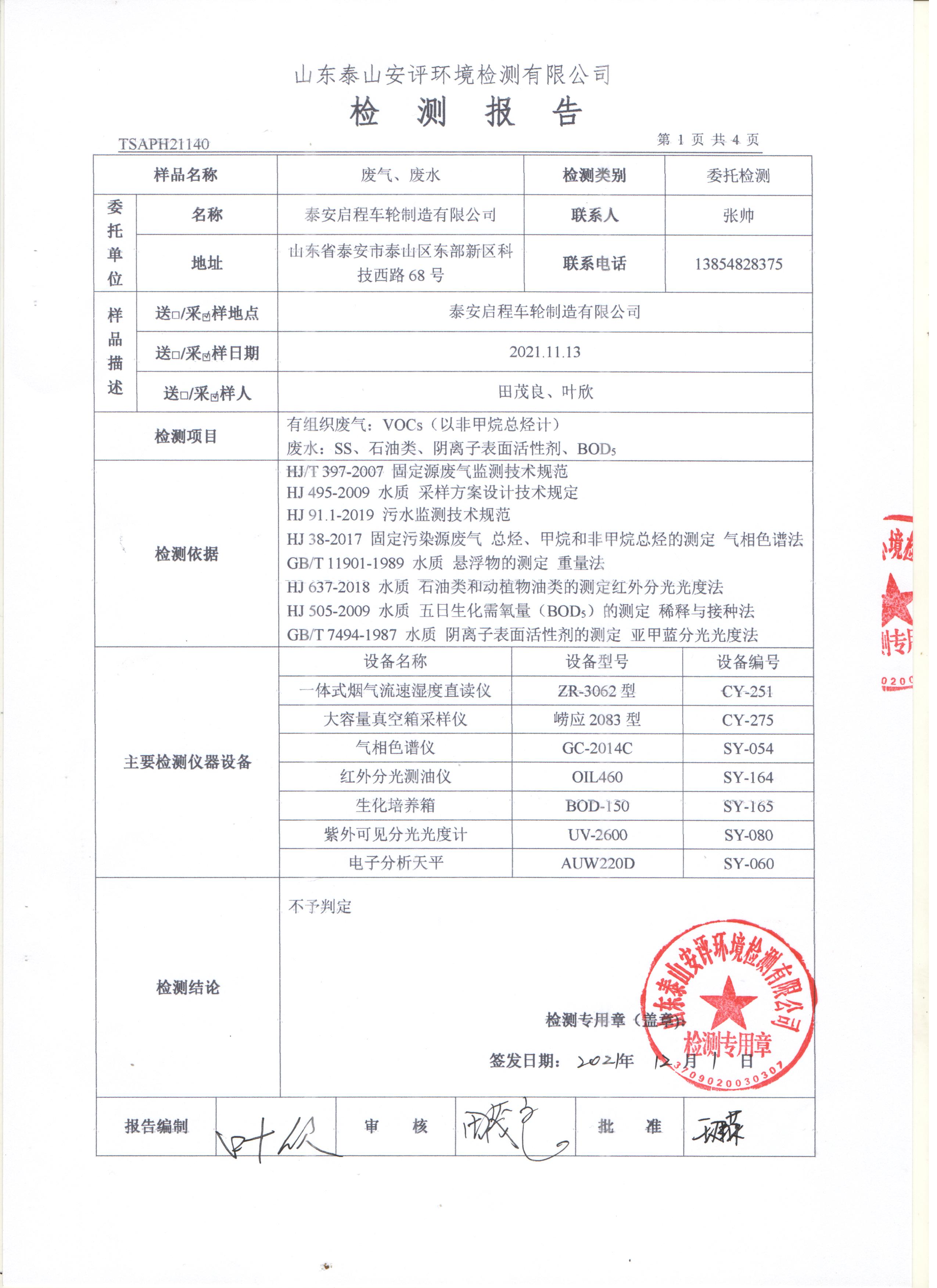 泰安啟程車輪制造有限公司2021年11月份環(huán)境污染物排放檢測報告