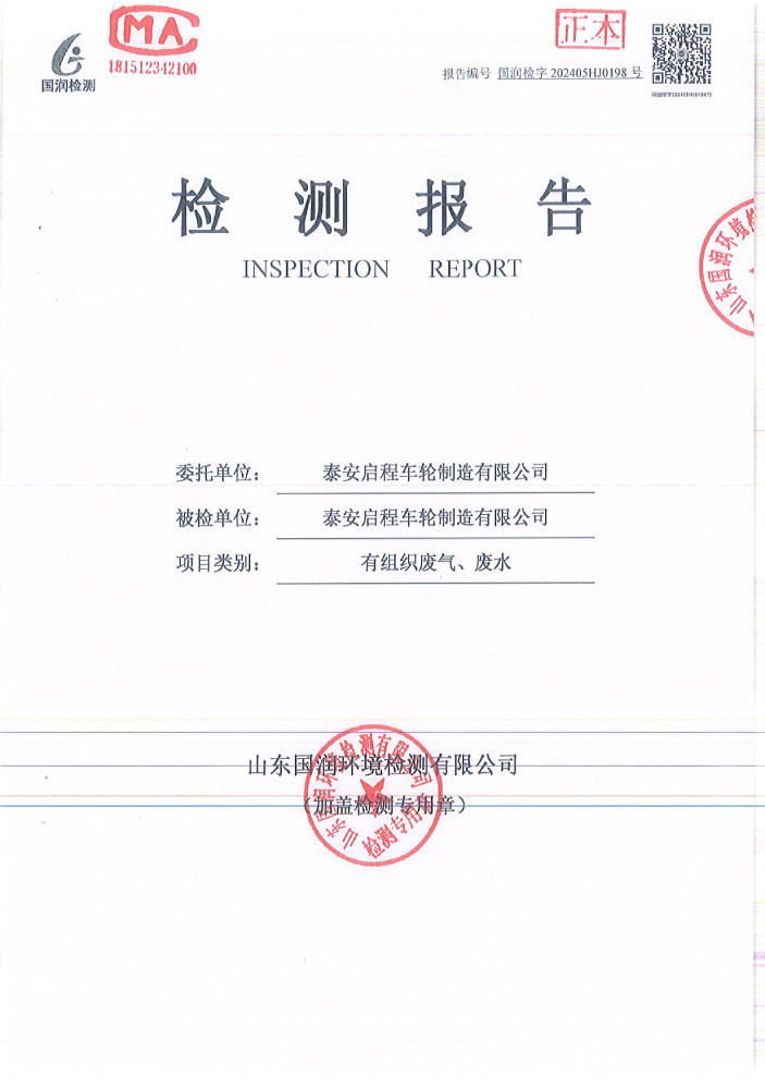 泰安啟程車輪制造有限公司2024年5月份環(huán)境污染物排放檢測報告
